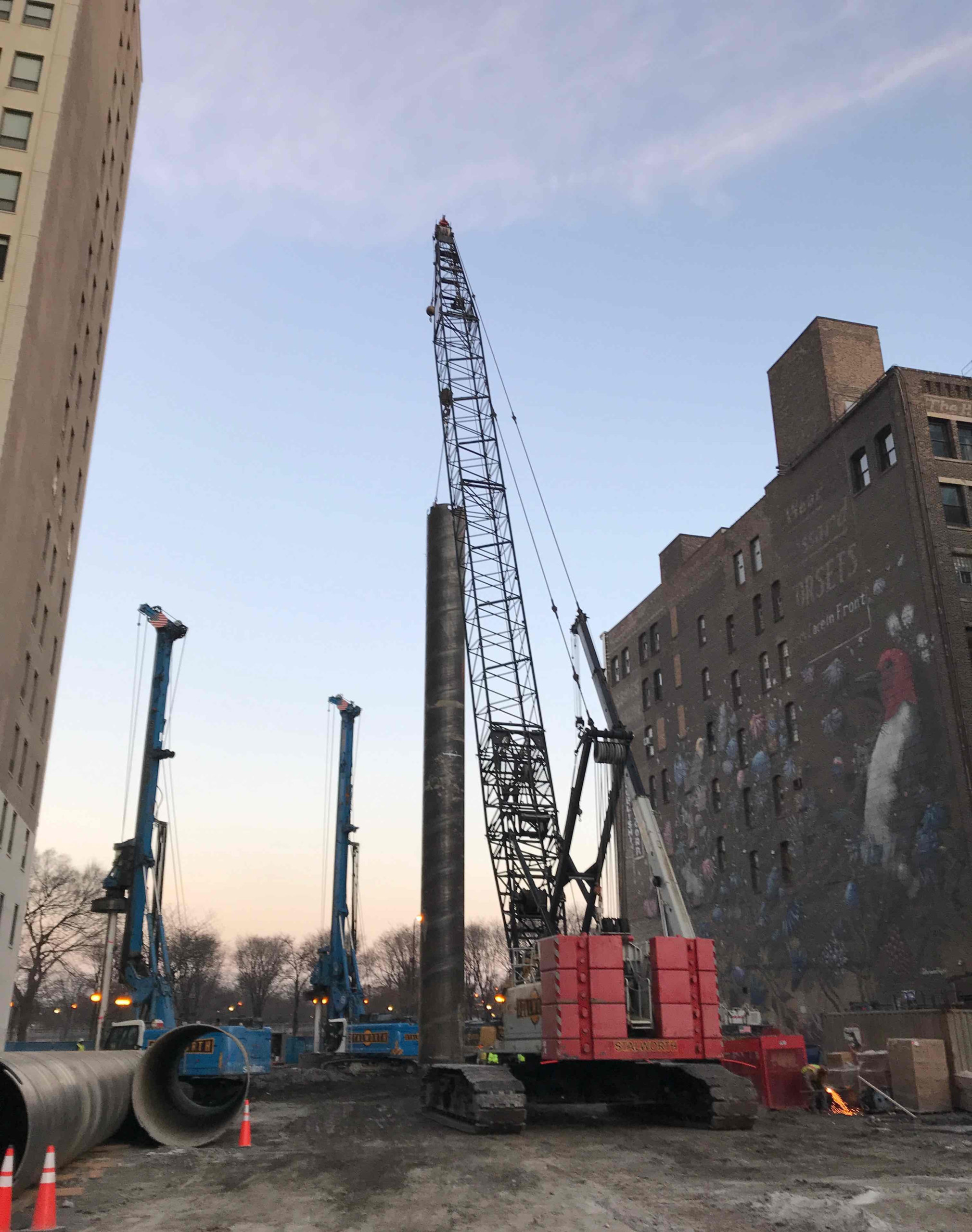 Stalwoth Underground was contracted to install caissons that would eventually serve as the deep foundation for a 74 story Hi-Rise. Overall, we took out more rock in the sockets than expected in order to find solid rock. By utilizing our growing knowledge of rock socketed caissons from our IDOT experience this project was completed without any tremmie pour issues or other delays. In fact, the job came in a couple days under schedule, on budget and without major obstructions or delay time.