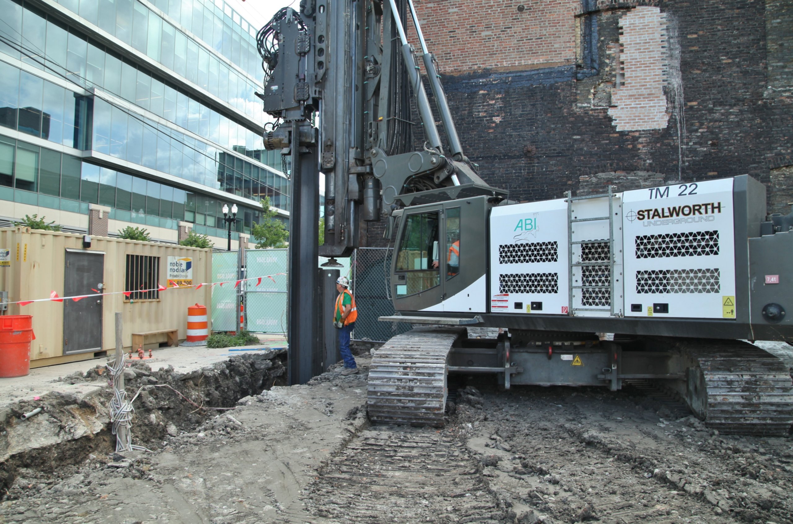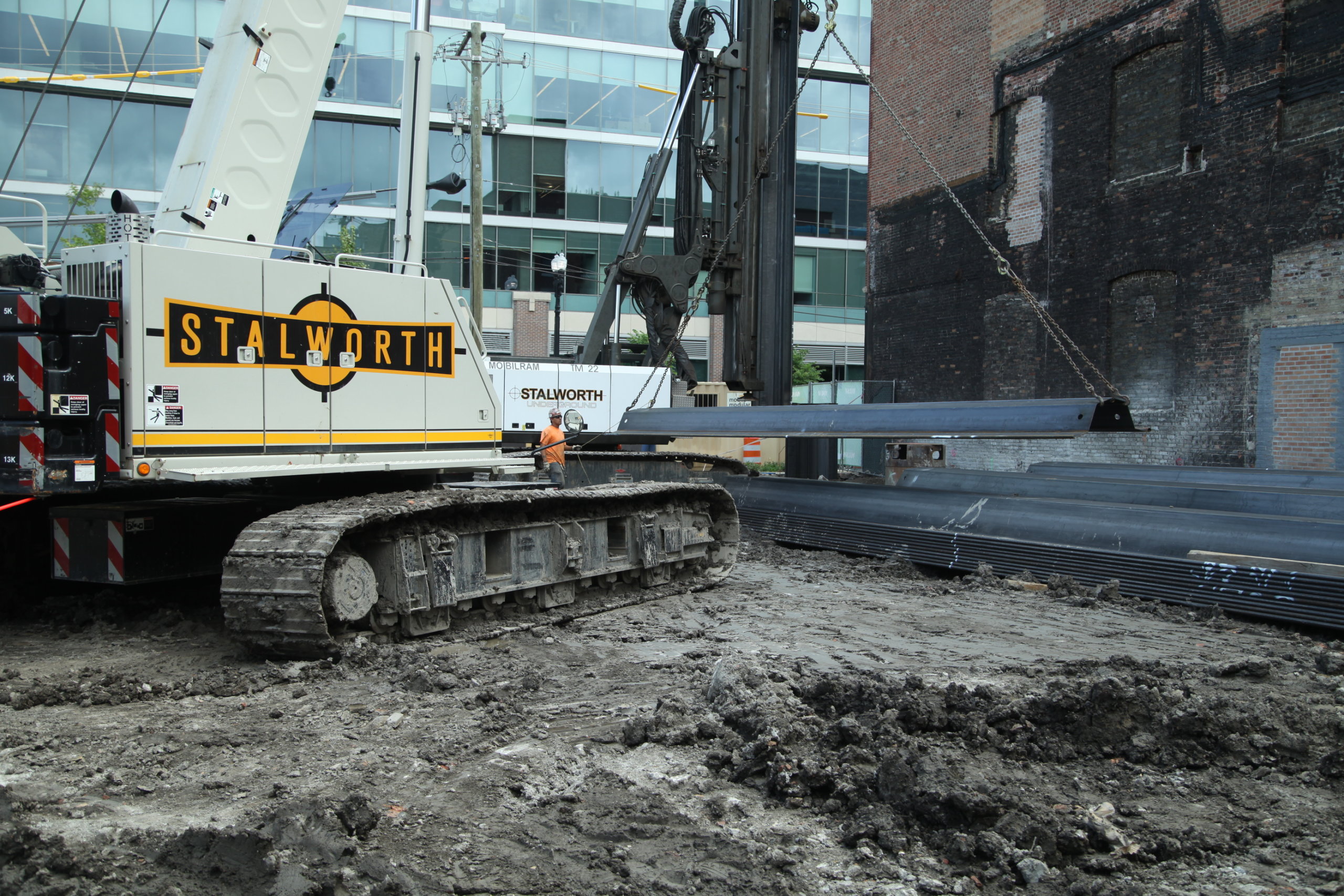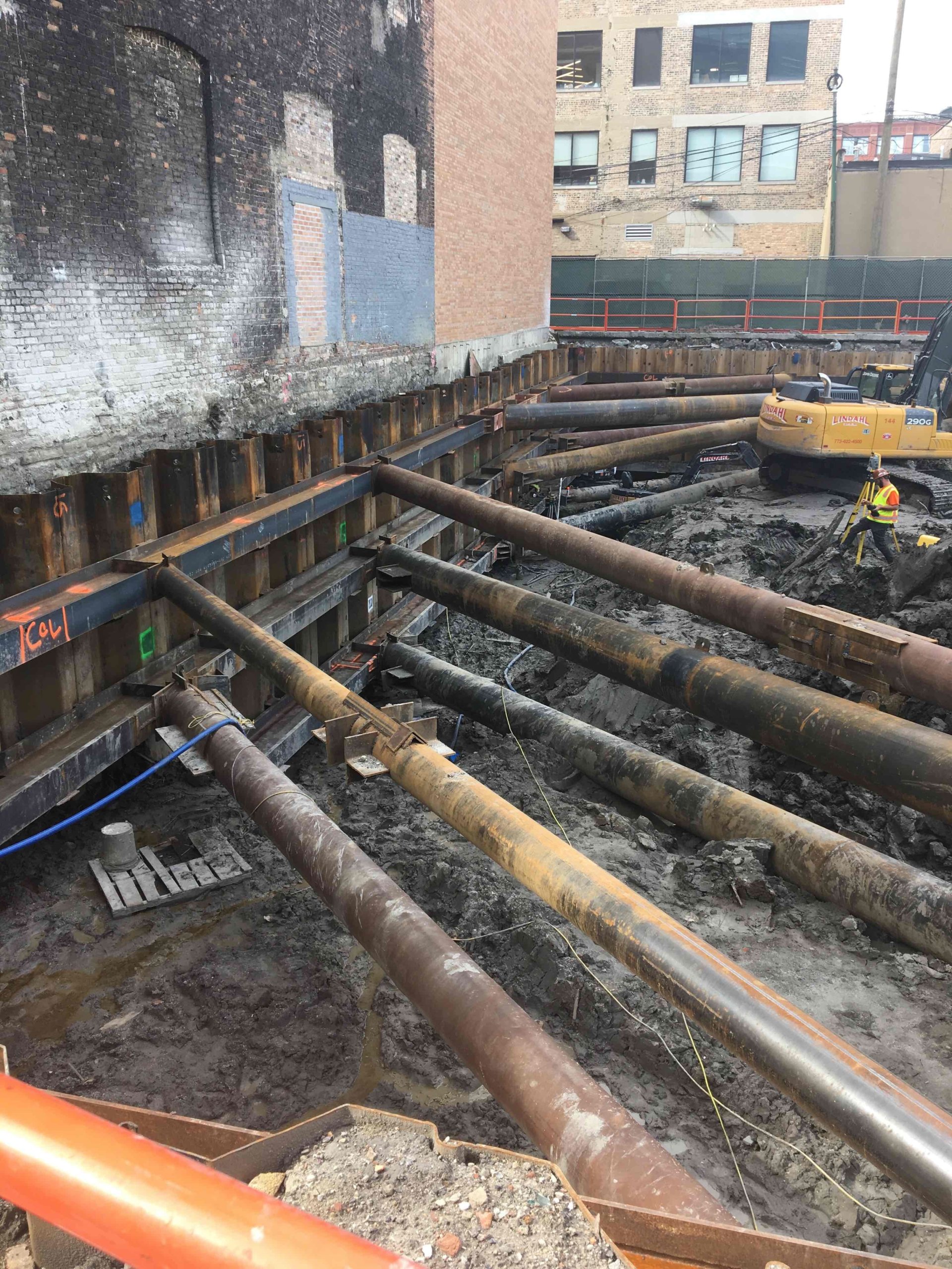 Stalworth was contracted to install 40 caissons to serve as the deep foundation for a new office building in Chicago. Additionally, we were contracted to provide an earth retention system to allow for site excavation. The earth retention system designed was a 3 level braced sheet pile system with pre-stressed braces to provide the safest retention of the neighboring buildings.