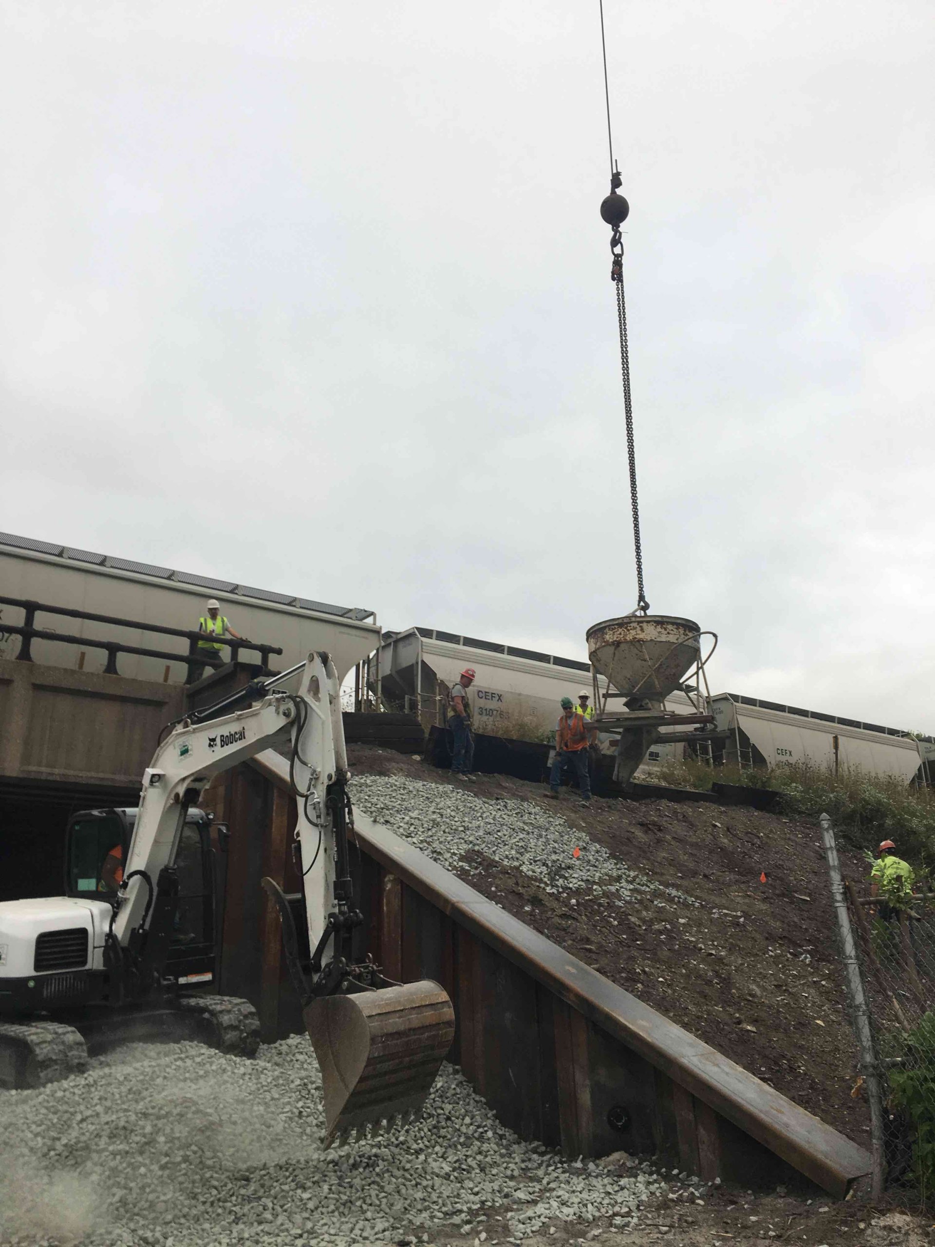 Stalworth began work for the Indiana Harbor Belt Railroad at Bridge 47C. We installed 44 piles to serve as the deep foundation for the abutments of a new railroad bridge. Stalworth also installed multiple earth retention systems consisting sheeting, drilled and driven solider piles and lagging, as well as bracing in order to allow the abutment to be installed in stages. To keep train traffic running we constructed and installed jump span on piles during an outage period.