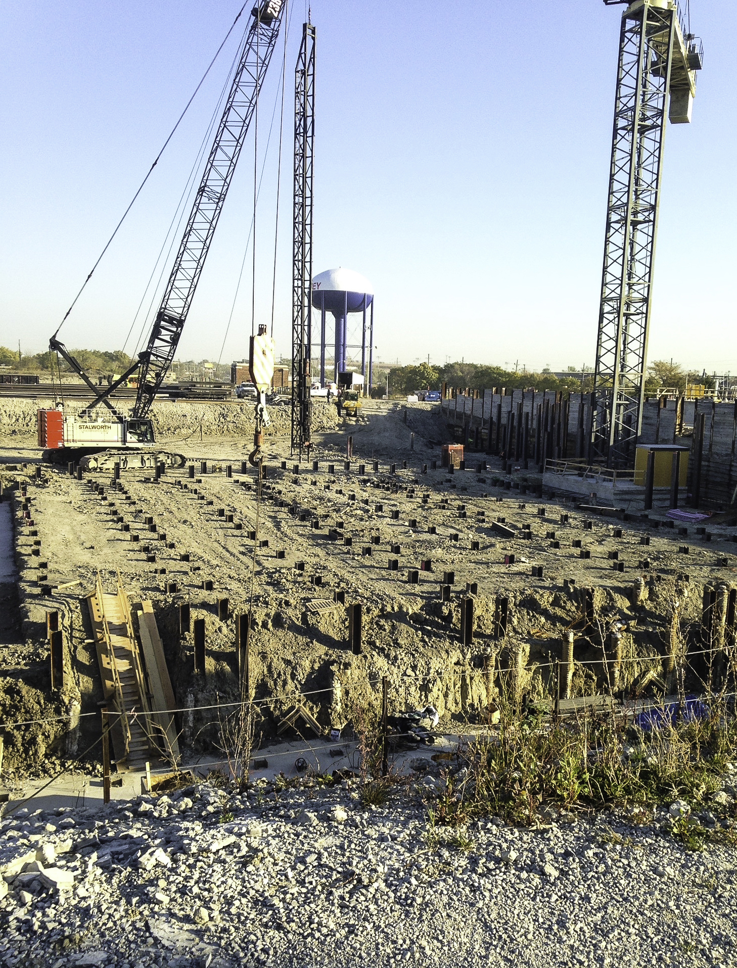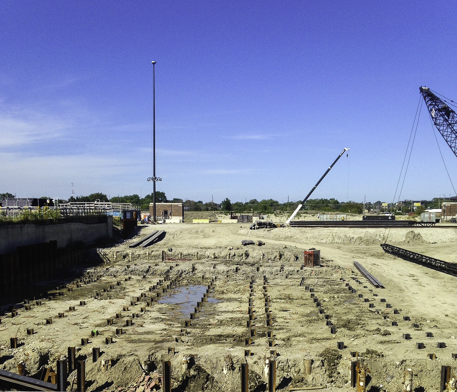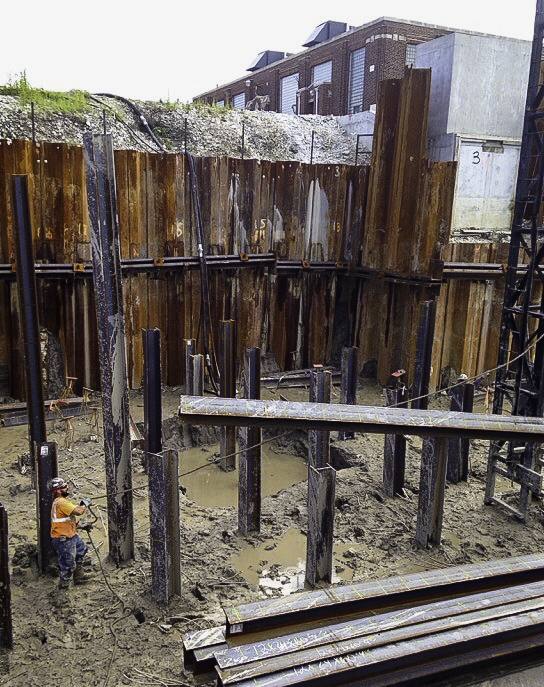 To expand and upgrade operations at the Stickney Water Reclamation Plant, Stalworth Underground was contracted to provide five earth retention systems, modify an existing earth retention system, and install the driven pile and micropile foundation systems on the site. Sheet pile walls, a soldier pile and lagging wall, cantilevered walls, walls braced with tiebacks (4 deadman anchors and 50 tiebacks were installed), and walls braced internally (corner braces, struts, and rakers) were used. Retained heights varied from 12 to 20 feet and the project required deflection to be limited to 0.25 inches. Designing a cost-efficient but effective wall meeting the deflection requirement was particularly challenging, as in some areas the walls has surcharge loads as high as 4,500 psf!