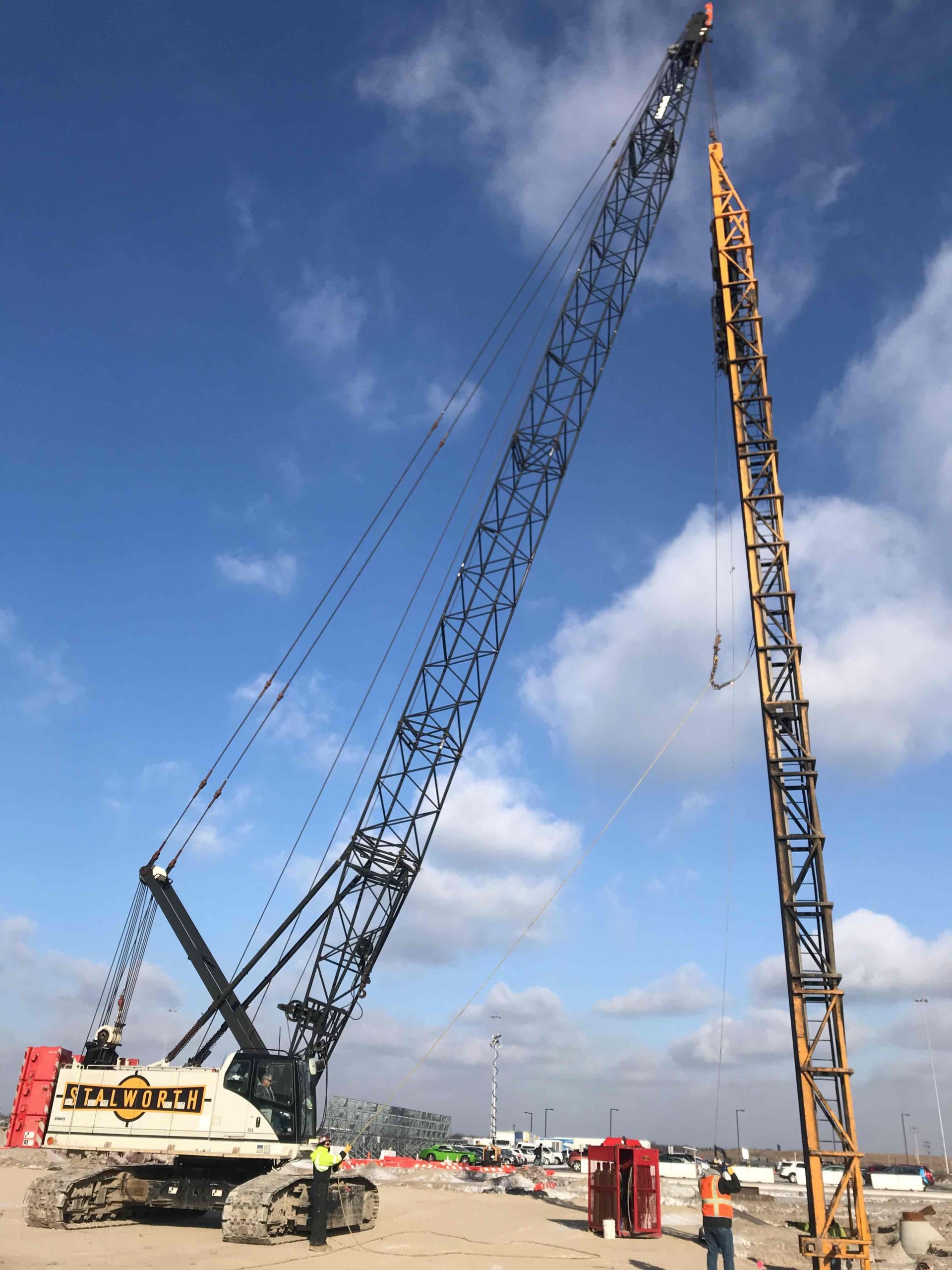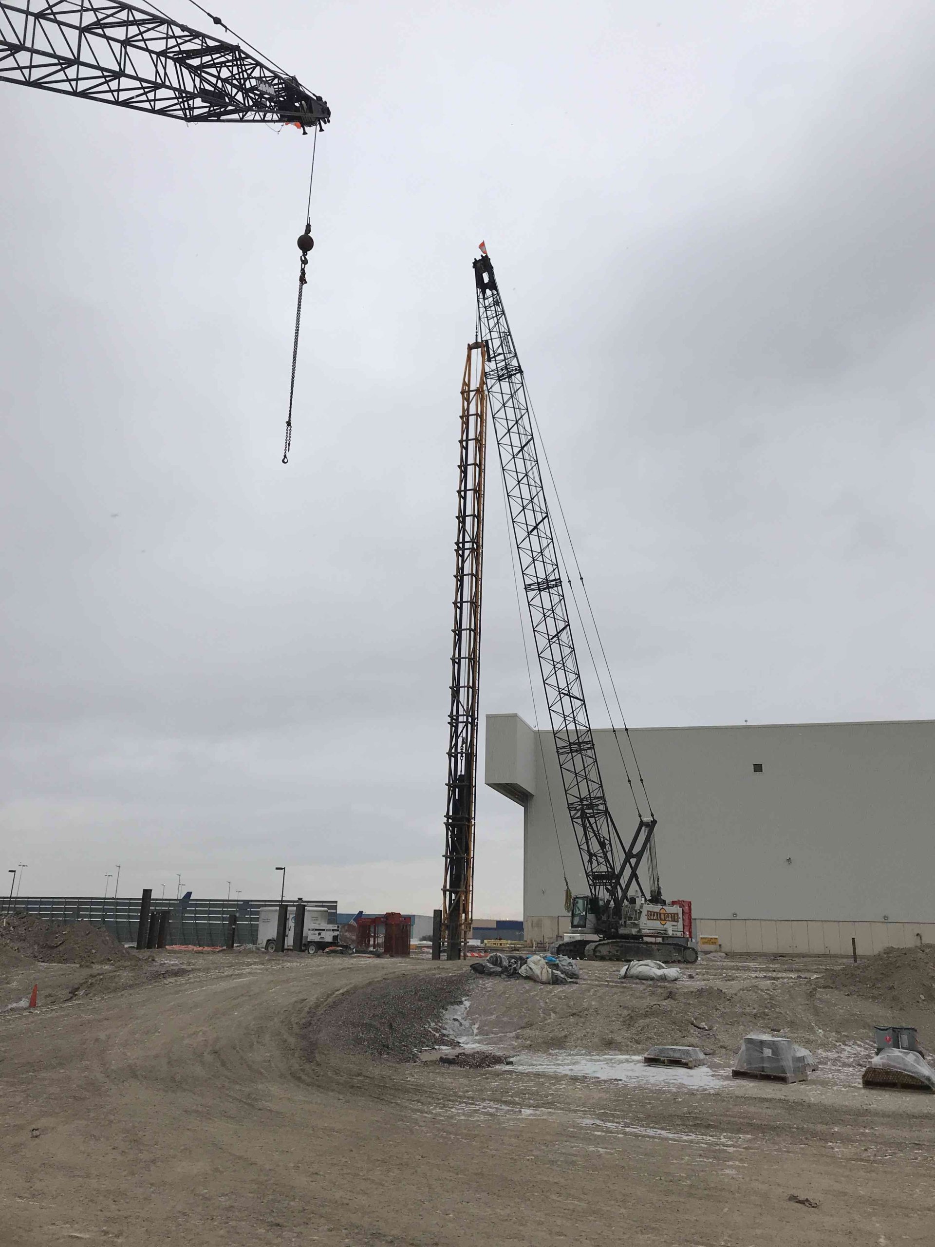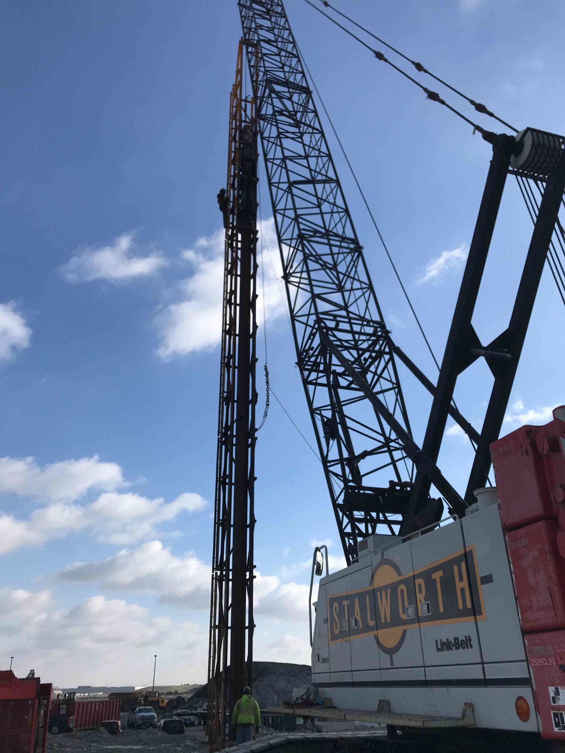 Over 200 driven piles were installed at O’Hare International Airport as a deep foundation for a new United Airlines hangar. Stalworth mobilized two cranes and crews to meet schedule demands and maximize production. Dense gravel and stiff clay layers reaching 80 blows/ft created challenges during pile driving and were remedied by Stalworth and GRL Engineers, who were brought onto the project for dynamic pile testing.